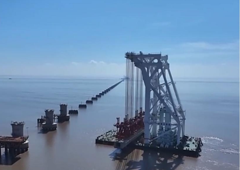 The Hangzhou Bay Cross-Sea Railway Bridge is a key control project of the Nantong-Suzhou-Jiaxing-Ningbo High Speed Railway and is currently the world's longest cross-sea high-speed railway bridge. With a total length of 29.2 kilometers, the bridge connects Haiyan in Jiaxing with Cixi in Ningbo. It is designed for a maximum speed of 350 kilometers per hour and is scheduled to be operational by the end of 2027.