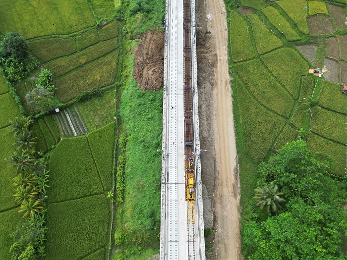 2022420日,第一根500米長(cháng)軌在印度尼西亞西爪哇省萬(wàn)隆縣雅萬(wàn)高鐵動(dòng)車(chē)走行線(xiàn)順利鋪設,雅萬(wàn)高鐵開(kāi)始啟動(dòng)鋪軌施工。