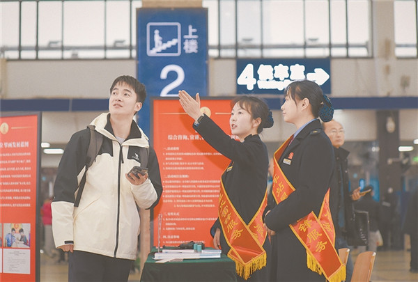 仔細答復咨詢(xún)、耐心引導候乘、服務(wù)重點(diǎn)旅客……3月17日,初春的長(cháng)沙乍暖還寒,而長(cháng)沙南站內,一派繁忙景象?!跋嬗鲩L(cháng)南·雷鋒服務(wù)站”的成員在站內來(lái)回奔走,全力為旅客營(yíng)造一個(gè)便利暢通、舒適溫馨的候乘環(huán)境。