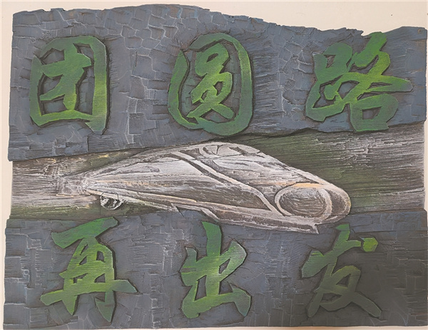 2010年,他的篆刻作品《古道故國》以秦代“車(chē)同軌”為靈感,將古驛道與高鐵軌道意象熔于一爐,在第八屆全國現代刻字藝術(shù)展上引發(fā)關(guān)注,最終被上海美術(shù)館永久收藏。次年,作品《吳越同舟》在第二屆國際刻字大賽斬獲殊榮,其以蒼勁刀痕勾勒車(chē)廂輪廓,車(chē)廂內以細線(xiàn)雕出山水紋樣,寓意“人在旅途,心寄山河”。