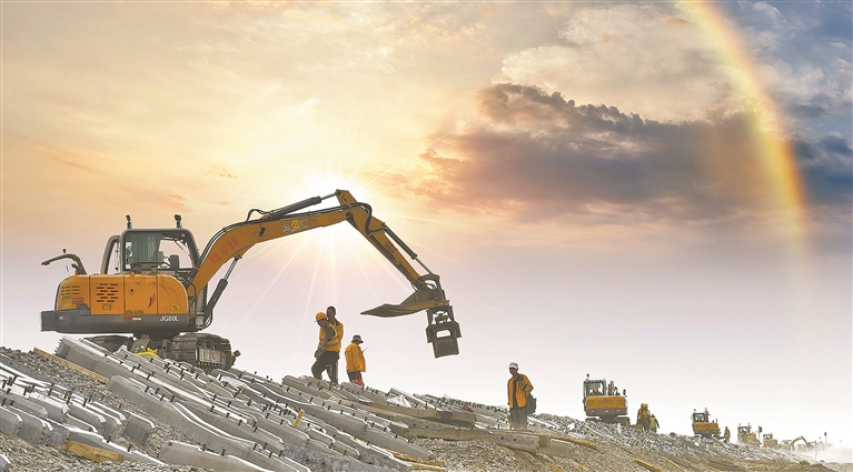 故事:擴能改造工程如火如荼進(jìn)行中,天邊出現美麗的彩虹,映照著(zhù)鐵路職工忙碌的身影