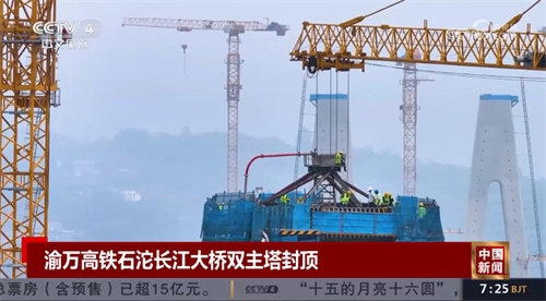央視[中國新聞]渝萬(wàn)高鐵石沱長(cháng)江大橋雙主塔封頂