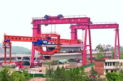 10月13日,在位于湖南省永州市的邵(陽(yáng))永(州)高鐵跨蘆洪江特大橋施工現場(chǎng),一榀長(cháng)32.6米、重近817噸的箱梁平穩架設,標志著(zhù)邵永高鐵三標...