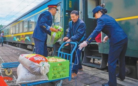 人民日報:鐵路工作人員幫鄉親搬運農產(chǎn)品上車(chē)