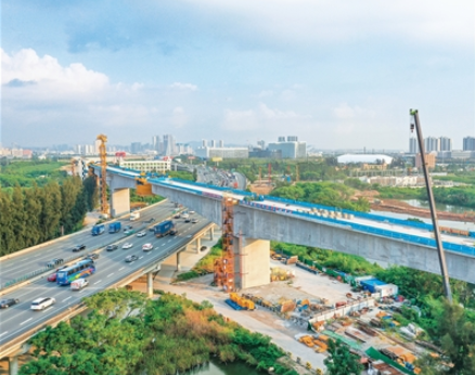 近日,在位于廣東省東莞市的深江高鐵東莞段跨沿江高速特大橋建設現場(chǎng),建設者有序推進(jìn)橋梁施工,全力沖刺大橋合龍。深江高鐵是粵港澳大灣區“...