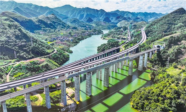 經(jīng)濟日報:盤(pán)興高鐵運行試驗列車(chē)經(jīng)過(guò)貴州省黔西南州興義市清...