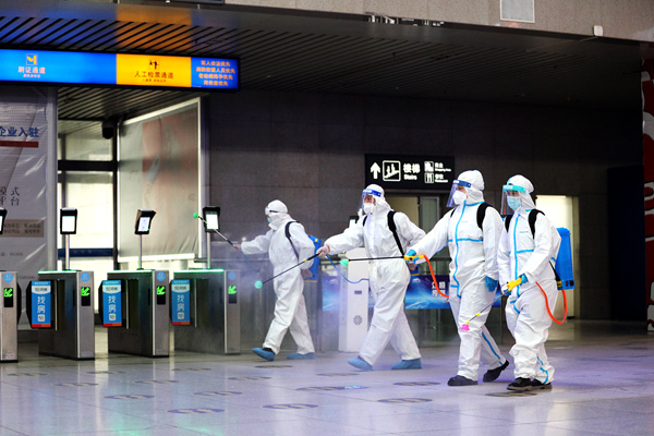 沈陽(yáng)局對各車(chē)站進(jìn)行消殺。國鐵集團供圖