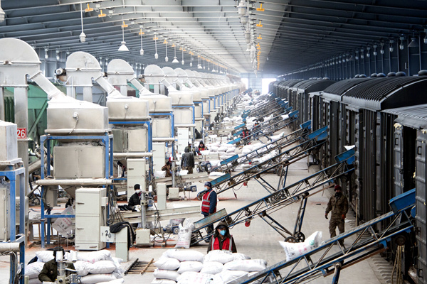 滿(mǎn)洲里口岸站做好化肥等春耕物資裝車(chē)。國鐵集團供圖