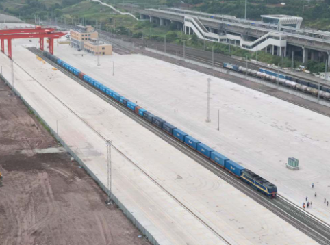 一列運載木薯淀粉的國際鐵路班列??吭趦冉瓏H物流港(資料照片)。 新華社發(fā)