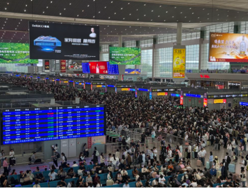 中國鐵路成都局集團有限公司成都車(chē)站介紹,10月1日當天鐵路成都車(chē)站發(fā)送旅客66.6萬(wàn)人次,創(chuàng )歷史新高,超過(guò)去年“五一”假期首日的61.4萬(wàn)人次紀錄?!捌骄糠昼娋陀袔装倜每统塑?chē)?!辫F路成都東站客運值班主任呂小龍說(shuō)。