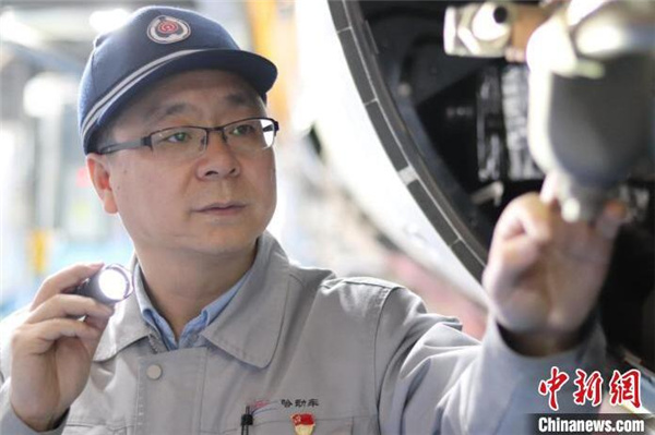 冷宏軍在檢查動(dòng)車(chē)組 李暢 攝