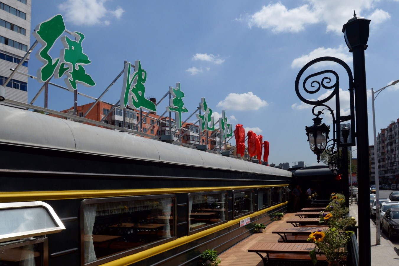 由仿制的內燃機車(chē)和兩節綠皮車(chē)廂組成,占地360平方米。機車(chē)部分為豪華包房,一號車(chē)廂為卡臺式餐廳,二號車(chē)廂餐位可靈活組合,加上室外月臺,可同時(shí)容納158人就餐。餐廳布局為歐式風(fēng)格,主營(yíng)俄式西餐和創(chuàng )意西餐。同時(shí)提供烤肉、坑烤等菜品,并配備自釀啤酒和各種進(jìn)口酒類(lèi),24小時(shí)營(yíng)業(yè)。