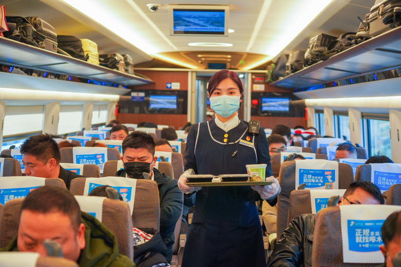 新年新氣象,自1月5日起,中國鐵路上海局集團有限公司在途經(jīng)上海、杭州、南京、合肥、徐州等地的470多趟高鐵列車(chē)上,一共上新了17款價(jià)格從18元到30元不等的普惠化、大眾化平價(jià)優(yōu)質(zhì)套餐。通過(guò)12306手機App下單、掃座位扶手二維碼、服務(wù)員下車(chē)廂等形式銷(xiāo)售,旅客不用離開(kāi)座位即可享用。